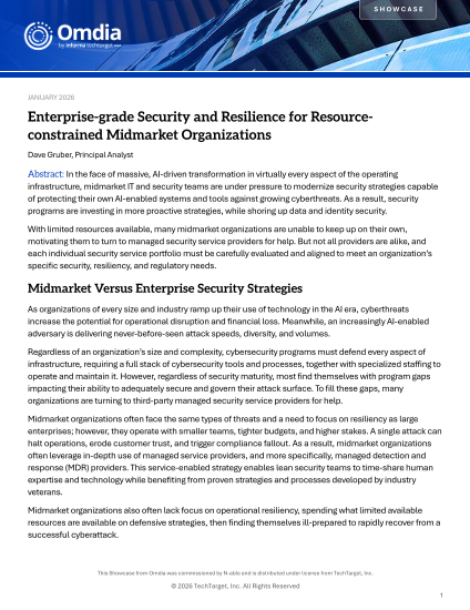 Download the latest Omdia analyst brief, Enterprise‑grade Security and Resilience for Resource‑constrained Midmarket Organizations, to discover how managed detection and response (MDR) services help midmarket organizations close security gaps, improve compliance, and recover quickly after an attack.